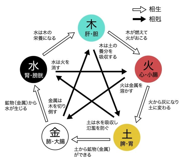 五行(木・火・土・金・水)の循環で