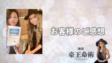 お客様のご感想 神奈川県のお客様より対面鑑定のご感想を頂きました!【お客様の声】 神奈川県よりお越しのお客様から湘南藤沢の帝王命術対面鑑定占いのご感想を頂きました!ありがとうございます。お顔出しでのご紹介OKを頂いたのでお写真を出させて頂いております。 2025.12.03 お客様のご感想